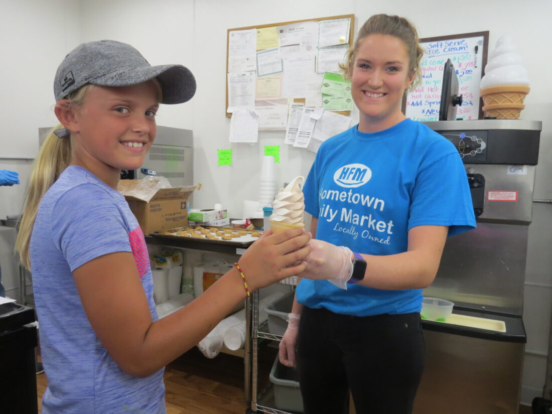 Tailen Sash is pictured with her ice cream cone served up by Katy Thompson.