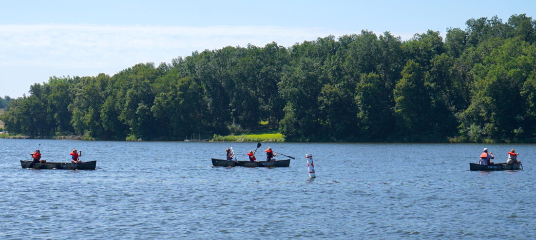 Canoers paddle the lake at Union Grove State Park near Gladbrook in July 2022. PHOTO BY RUBY F. MCALLISTER