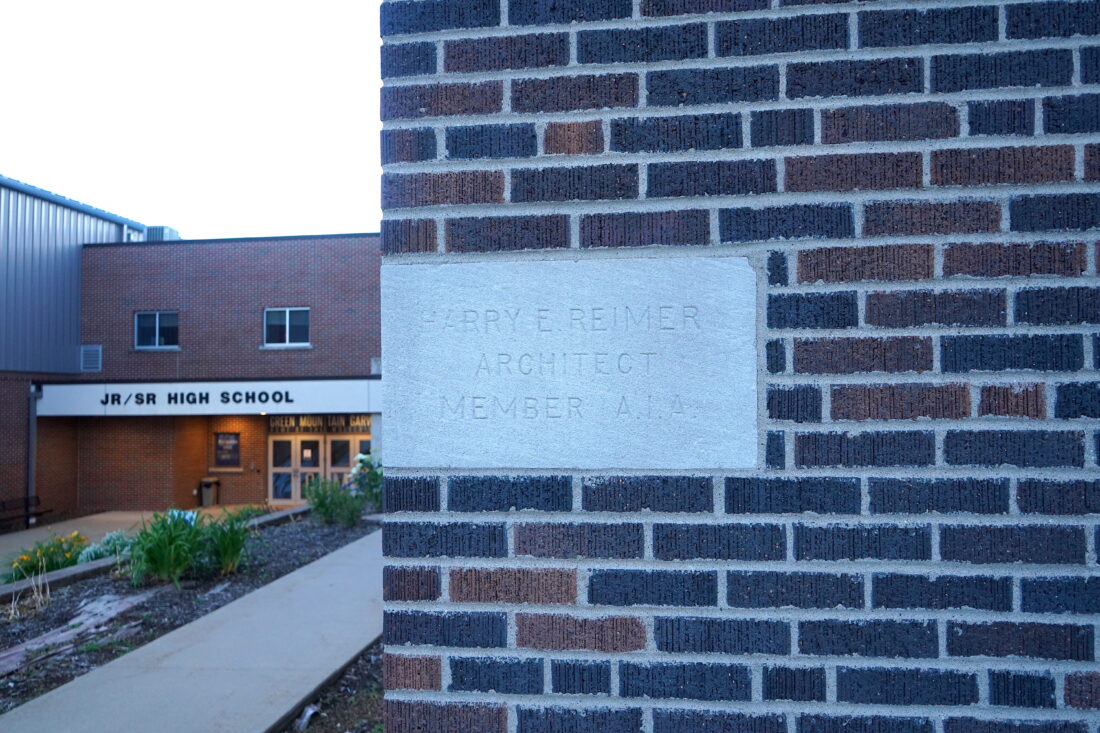 - The GMG Community School District’s 1925 core secondary building in Garwin last Monday evening. The 99-year-old building would be replaced if a proposed Nov. 5, 2024 bond referendum is approved by a 60% supermajority of voters. The GMG school board approved contracting with design-build firm SitelogIQ during the Monday, June 10 meeting as part the planned referendum. PHOTO BY RUBY F. MCALLISTER