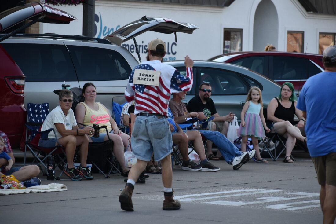 - While participating in Grinnell’s Independence Day Parade last month, House District 53 Democratic candidate Tommy Hexter – wearing a spiffy, patriotic shirt – handed out a generous amount of candy and fliers to spread his message of opportunity and unity. PHOTO BY JONATHAN MEYER