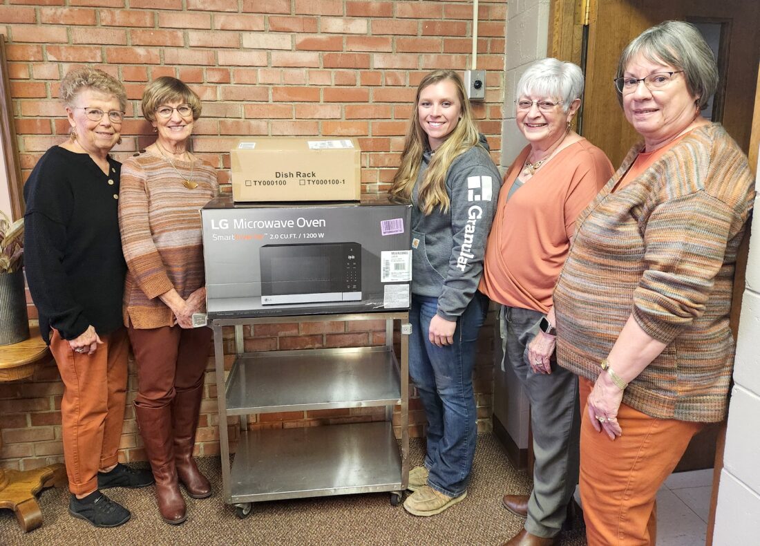 GLADBROOK – The Gladbrook Women’s Club recently donated a microwave and dish drainer for use at the Tama County Fair food stand this past week. Accepting the donation is Christy Flamme, third from right.