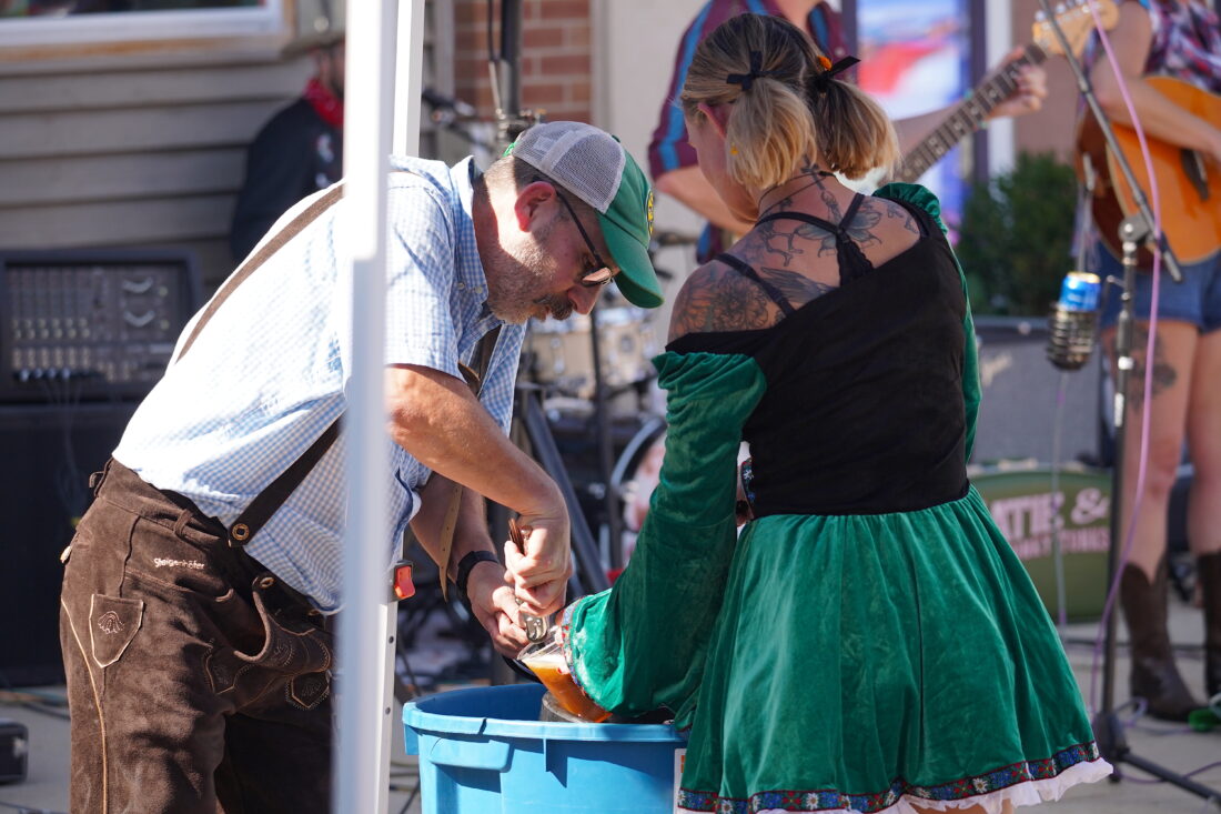 - The Dig Inn’s Ben Robertson, left, serves up a draft to a customer during Katie and the Honky Tonk’s performance on Saturday afternoon. PHOTO BY RUBY F. MCALLISTER