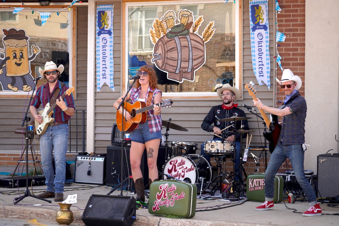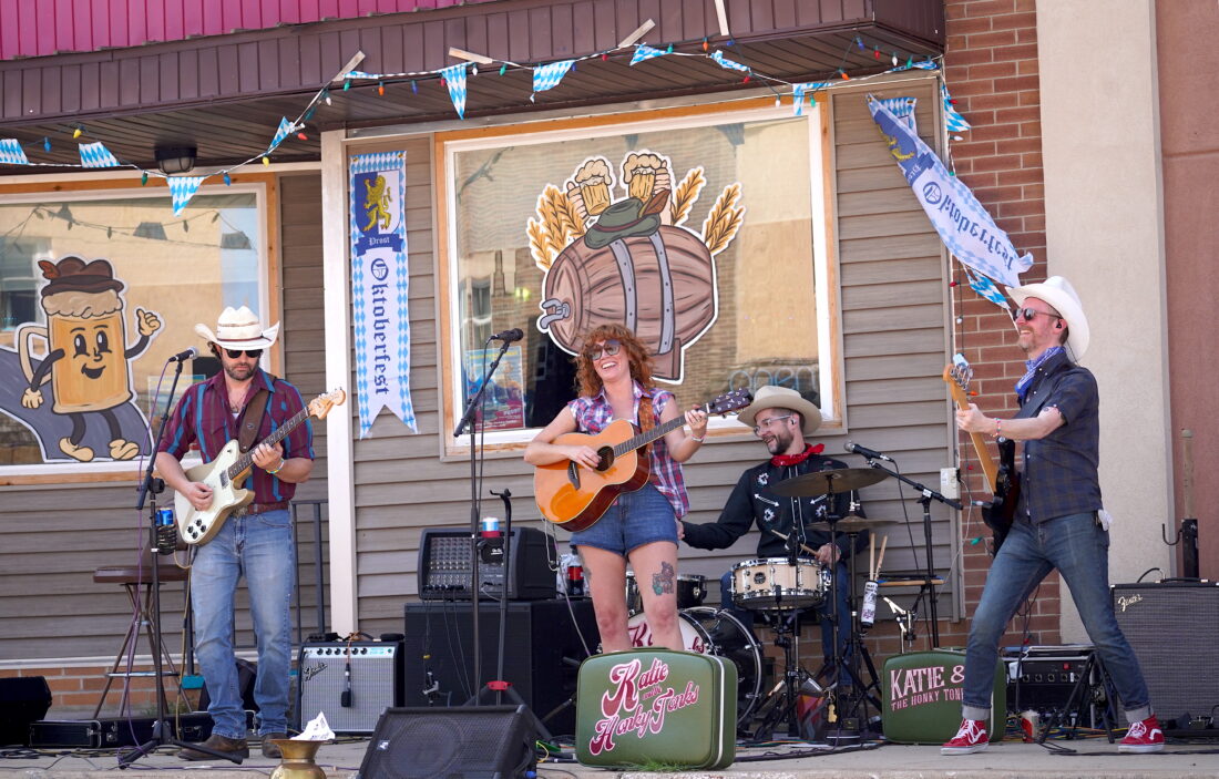 - Katie and the Honky Tonks kick off their 90-minute Becktoberfest set on Saturday, Sept. 27, in downtown Reinbeck. The classic country band which includes (from left) Jesse Cotton, Katie Sires, Luke Sires (on drums), and Johnny Love performed from their debut album “Ain’t No Shame” which dropped this past July. PHOTO BY RUBY F. MCALLISTER