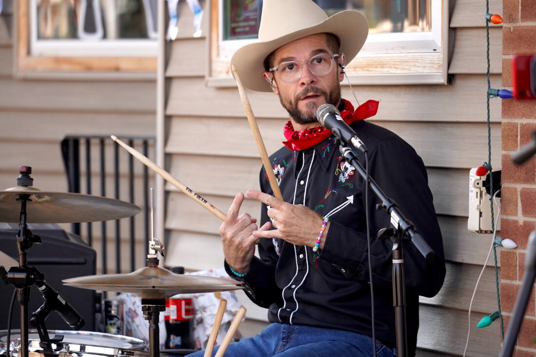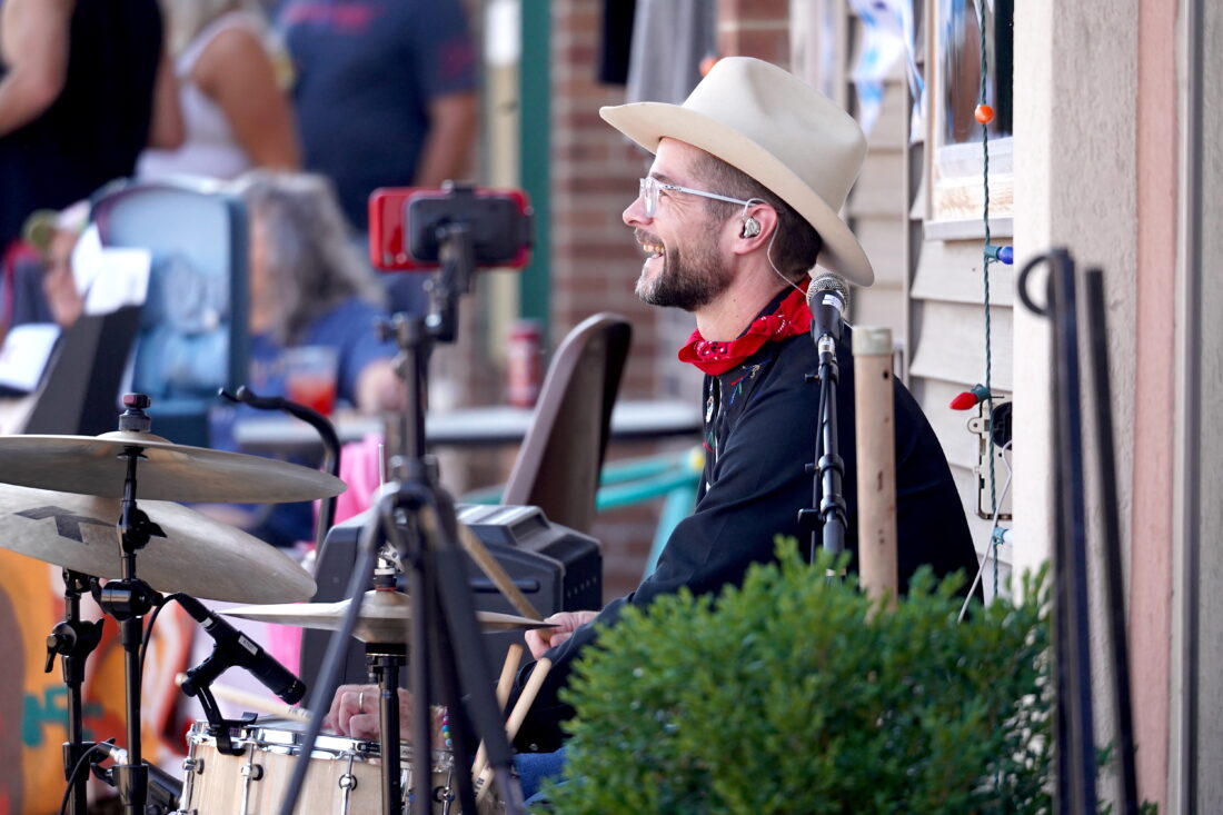 - Katie and the Honky Tonk’s band manager and drummer Luke Sires finishes a song with a flourish on Saturday. PHOTO BY RUBY F. MCALLISTER