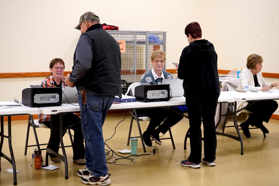 - Election officials assist voters at Reinbeck Memorial Building this past Tuesday afternoon during the 2025 city-school election. PHOTO BY RUBY F. MCALLISTER