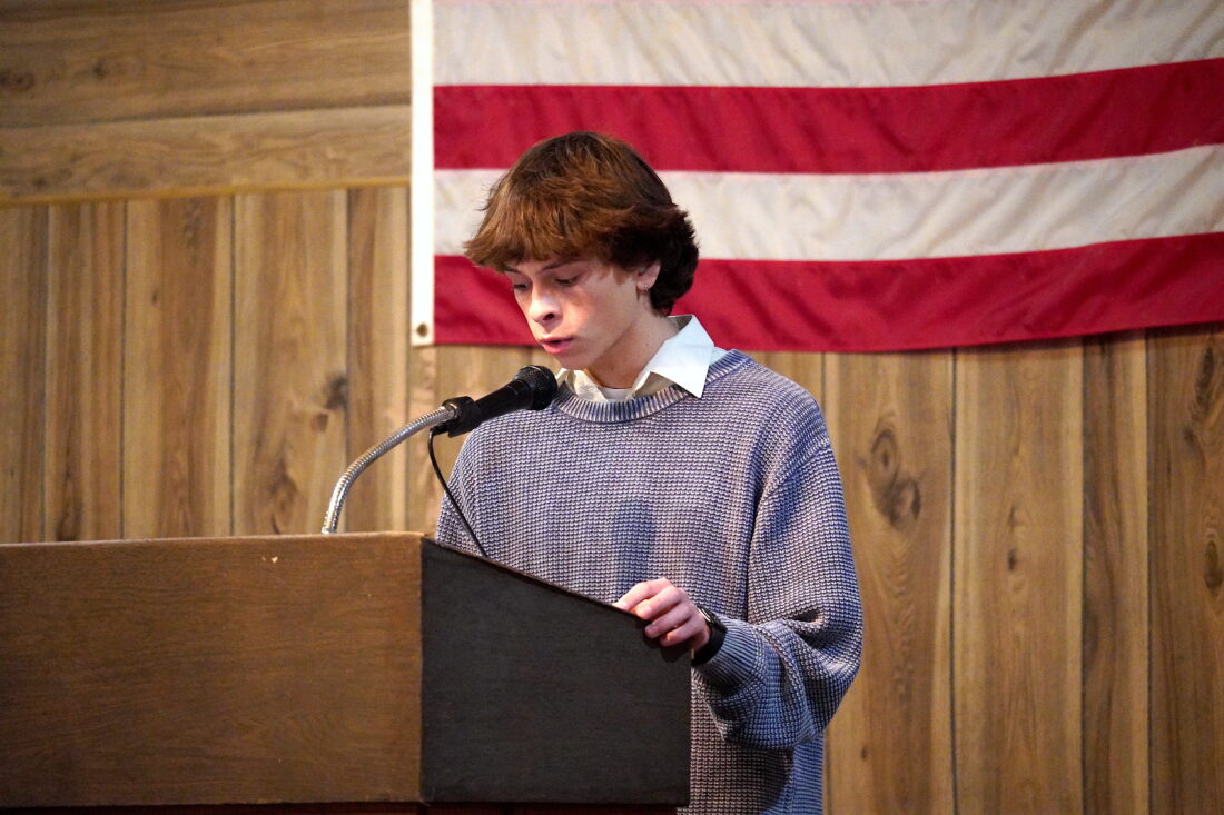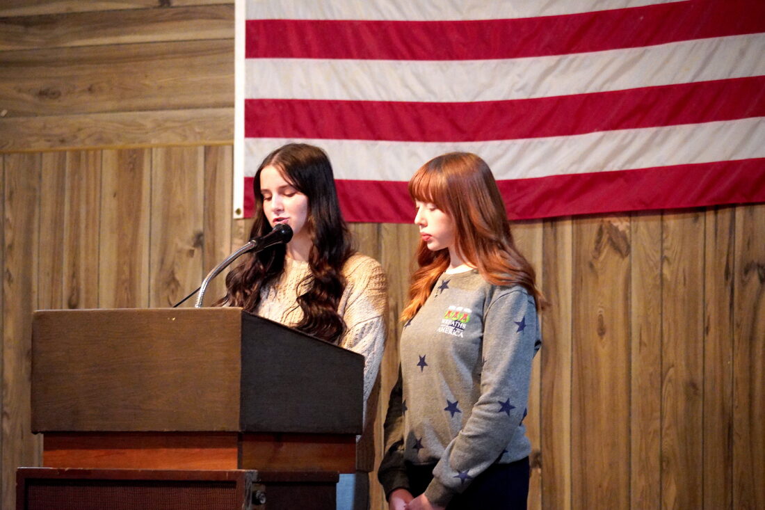 G-R secondary students, including Avery Boyer, Mai Knaack, Prycely Beard, Karina Arvizu-Ersland, Nathan Smiley, and Leila Thesing, were assisted by members of both the AMVETS post and the American Legion, including Reinbeck American Legion Post 242, in conducting the program. The program included a welcome message (Boyer and Knaack), the Pledge of Allegiance (Beard and Arvizu-Ersland), musical performances by both the G-R band and choir, a moment of silence, student tributes (Smiley and Knaack), taps (Thesing), and closing remarks (Boyer).