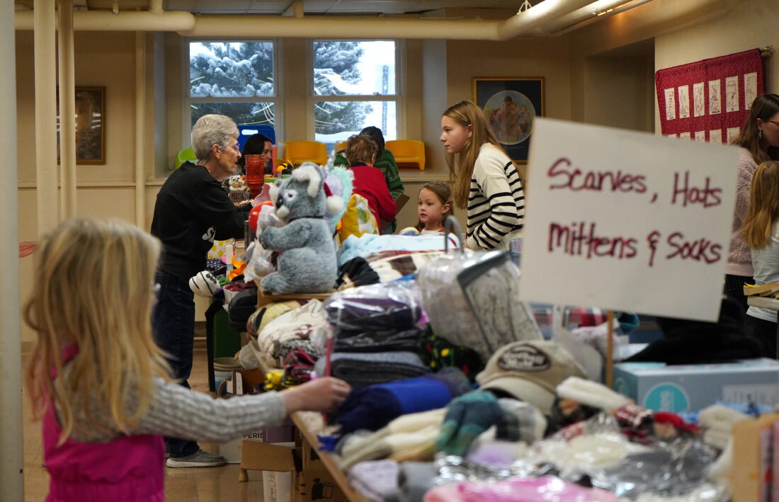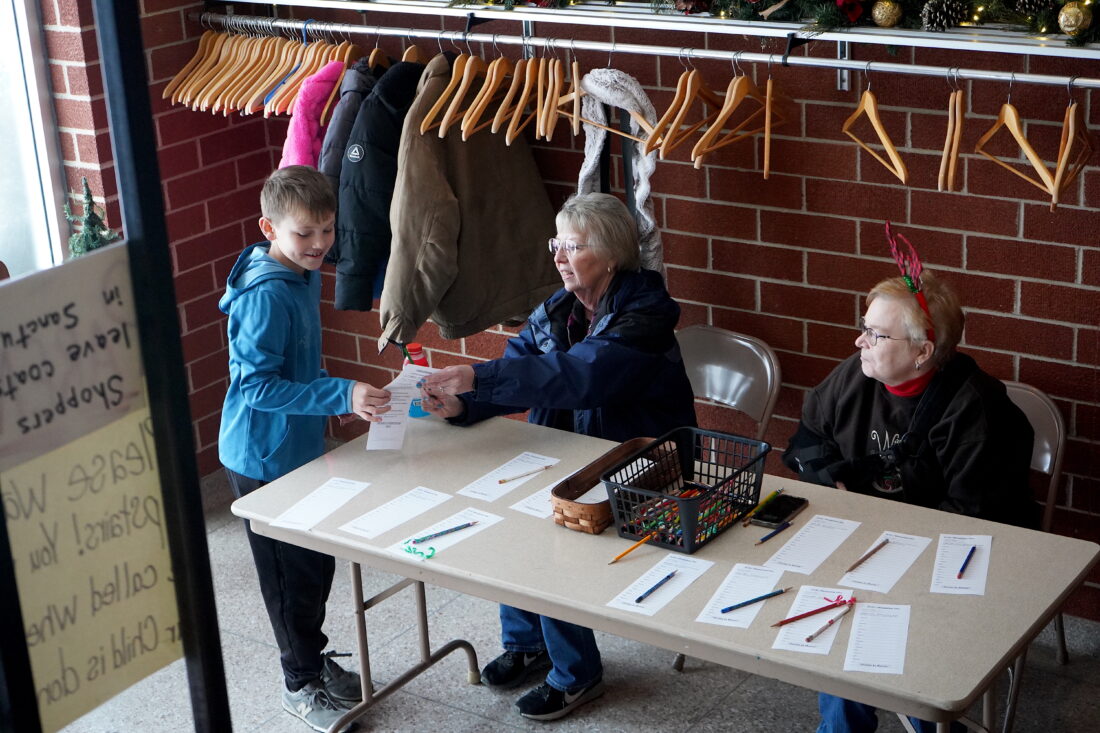 Last Saturday, Dec. 13, as snow piled up on the sidewalk outside Peace Church’s south entrance, children were lined up down the street well ahead of Kids Shopping Day’s 9 a.m. start which kicked off with Paustian unlocking the church’s double doors. Once inside, attendees were greeted at the check-in table by volunteers Sherri Denbow and Becky Fevold who handed out gift lists and pencils.