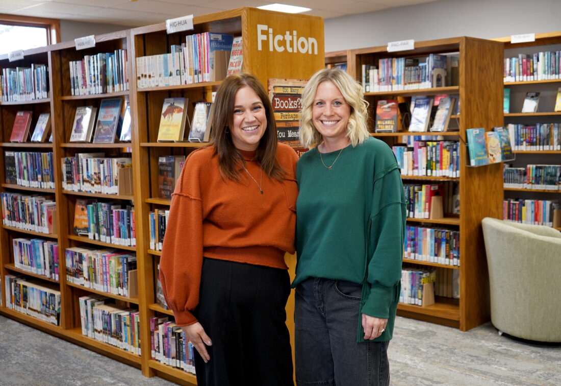 Reinbeck Public Library Director Lenah Oltman, left, pictured alongside RPL’s new director, Michelle Sieh, on Monday, March 23, 2026, in the library’s 1991 addition which recently underwent an extensive renovation, including new carpeting. Earlier this year, Oltman accepted a newly-created position with Generational Wealth Partners in downtown Reinbeck. Her last full day at the library was March 20; Sieh will begin full-time in her new role June 1. PHOTO BY RUBY F. MCALLISTER