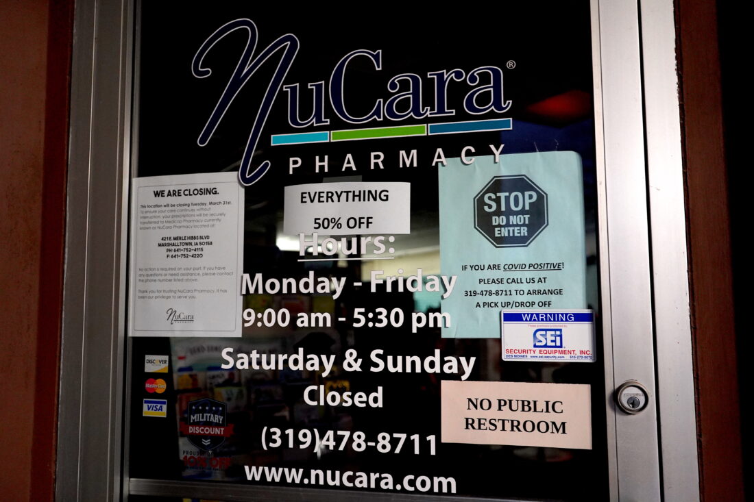 On the door of the Traer pharmacy, the note to customers about the closing somberly ends with, “Thank you for trusting NuCara Pharmacy. It has been our privilege to serve you.”
