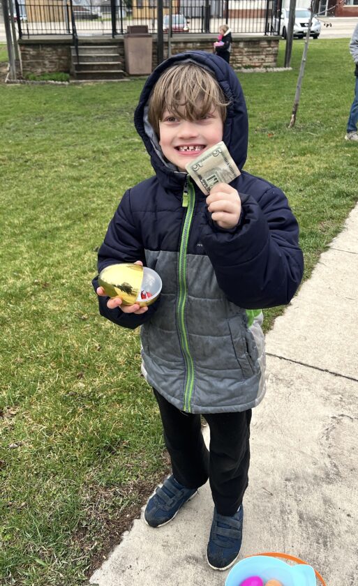 GMG second-grader Alarick Farrell-Damico finds a golden egg!