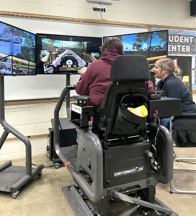Celsey with New Century FS showing students how to drive the spray simulator.
