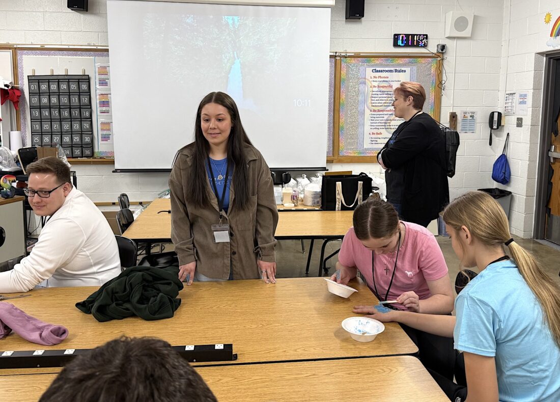 Nurse and GMG alumna Kaylea Duden demonstrating with a dummy how to administer an IV. PHOTOS COURTESY BRITTANY RAYMOND/GMG iJAG