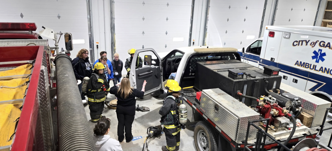 - Garwin Fire and Ambulance conducting an accident scene simulation with GMG students at the new fire station in downtown Garwin.
