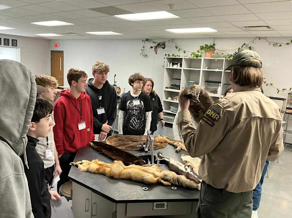 James Linden with the Iowa DNR teaching students about local wildlife.