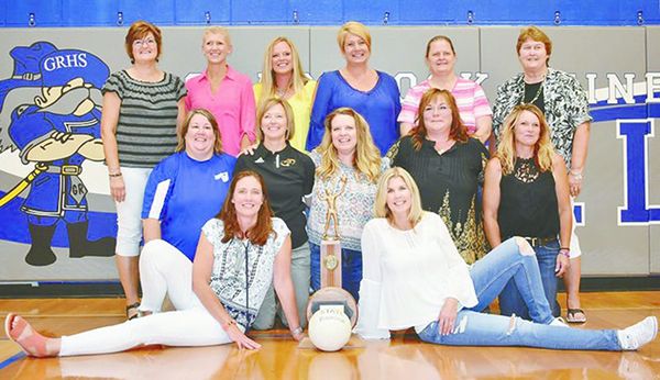T-R PHOTO BY THORN COMPTON - Members of the Class 1A state runner-up 1988 Gladbrook-Reinbeck volleyball team were honored on the 30th anniversary on Thursday night in Reinbeck. Pictured are, front row: (from left) Ann (Flamme) Deardorff and Kim (Clapp) Conklin; middle row: Paula (Petersen) Kelley, Kristen (Anker) Garber, Jennie (Murty) Goos, Cynthia (Busch) Eggers) and Stacey (Svendsen) McVicker; back row: assistant coach Marcia Koester, Cindy (Horstmann) Gibbs, Sheresa Lynch, Angie (Busch) Beenken, team manager Chris Gienger and head coach Terri Luehring; not pictured: Arricka (Earp) Brouwer, Susan (Sievers) Anderson, Kim Snow, Lenda Walton-Proffitt and Nicole (Paustian) Clapp.