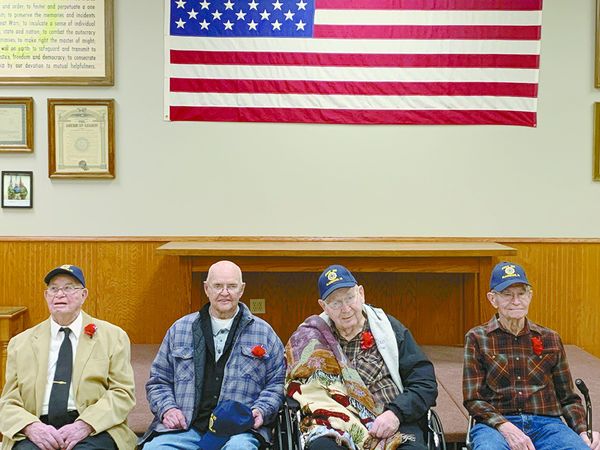 - World War II veterans present were (l-r) John Buskhol, Ray Landt, Robert Mohr and Dale Osten.