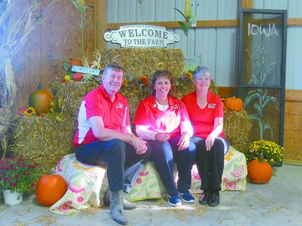 PHOTO BY MARGARET THOMSEN American Legion Auxiliary National President 2019-2020 Nicole Clapp (center) is pictured with her Campaign Co-Chairs Past National Commander Dan Rehbelin and Ann Rehbelin of Ames. The photo was taken during the “Farm to Table” event held on the Brett and Beth Miller Farm near Gladbrook.
