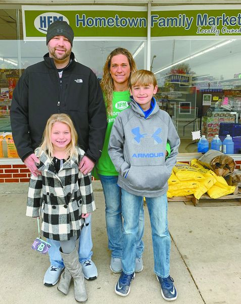 Brody and Tandi Davis with their children Brayla and Brayton in front of their Hometown Family Market.
