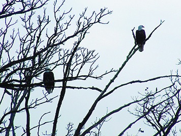 Iowa had nesting eagles everywhere when the first settlers arrived, but there were no nesting eagles in the state for most of the 1900s. Habitat loss and later the use of DDT drove them to near extinction in all but the more remote areas of Alaska and Canada. Their recovery in much of their historic range is one of our top conservation success stories. The Bald Eagle was not a unanimous choice as our national bird. Benjamin Franklin preferred the Wild Turkey and felt the eagle was what he called a “sharper” – one who made a living by dishonest means. Eagles are opportunistic feeders. They prefer fish, but are not averse to eating carrion (dead meat). They will feed on whatever they can find if fish aren’t readily available. That includes everything from waterfowl, turtles, and even frogs! They frequently steal food from each other and from smaller raptors like the Osprey. The Bald Eagle was selected in spite of objections due to its power and majestic appearance. Eagles can live 20 years in the wild, and even longer in captivity. They mate for life, but will take a new mate if one is lost. It takes them a long time to reach sexual maturity for a bird. Most eagles don’t mate until they’re at least four years old, the first year they’ll actually display the characteristic white head and tail. Eagles typically lay two eggs each year and begin their nesting cycle in late winter when there’s still danger of the eggs freezing if left unattended at the nest for more than a few minutes. Both parents help to incubate the eggs so that each has a chance to feed. In good times when food is plentiful and bad storms are few both young often survive to at least fledging. Young eagles may die after leaving the nest due to accidents like hitting power lines, car accidents, or even starvation. Hunting is a learned skill, and like people, eagles don’t learn at the same rate. Even though egg shell thinning DDT was banned years ago, eagles are still threatened by human activity. One of the chief causes of eagle mortality today is lead poisoning. Lead poisoning of eagles is one of the reasons that non-toxic shot is now required to hunt waterfowl. A continued source of lead comes from feeding on dead game birds and animals that were not retrieved by hunters. They also pick up lead fragments from gut piles of field dressed deer and from the hides and boned out carcasses of deer that are left out in the field. It takes only a tiny amount of lead to make an eagle sick. Sick birds may not be able breed even if they live, or may become so weak that they can no longer hunt and die of starvation. Bald eagles have been nesting in ever increasing numbers in Iowa. Thirty years ago, I was speaking to groups saying things like “Lacking the proper habitat, we can’t expect to ever see nesting eagles in Grundy County”. But there are at least four nests in the county this year. One is north of Grundy Center. A second is south of the County Collection Center (old landfill). The third is about a mile and the fourth is a mile west of Morrison. All have had activity this winter by pairs adding more nest material to them. If you suspect an eagle nest elsewhere, let me know please.