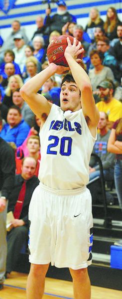 Gladbrook-Reinbeck’s Joe Smoldt takes a shot Tuesday night against Dunkerton. Smoldt had 27 points and the Rebels went on to win 68-44.