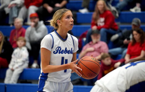 The GC/G-R cross country team embarked on a backroad journey Friday afternoon as they ran the homecoming game ball 15.4 miles from Reinbeck south to the football field in Gladbrook. Here the group comes into Lincoln on E Avenue near the halfway point of the run. From left are Ethan Sadler, Tyler Venenga, Wesley Latchman, Soren Cleveland, Kate Hayes, Xandra Anderson (holding the ball), Avery Knutsen, Paul Brockett, Sam Bingman, Brandon Strohbehn, Kaden Lynch, Jeryn Spear and Brennen Sager.