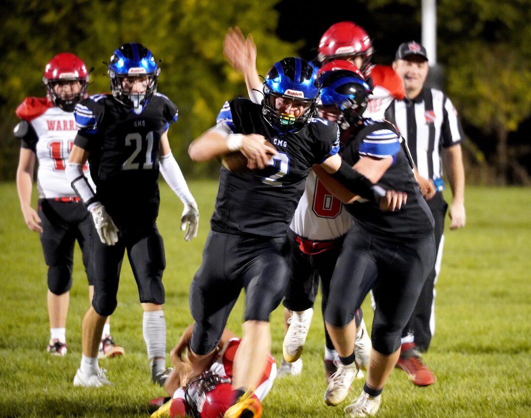 GARWIN – It was clear even before halftime hit, the GMG Wolverines more than likely had a win in the bag over the Meskawki Settlement Warriors as the 8-player District 6 teams faced off last Friday evening in Garwin. After scoring 64 unanswered points across the first period, GMG’s eventual 80-16 triumph over Meskwaki (0-7) marked not only a solid end to Homecoming Week for the Wolverines but also their first win in what has been a tough season on the gridiron.