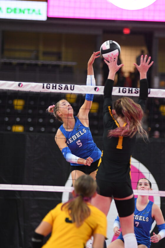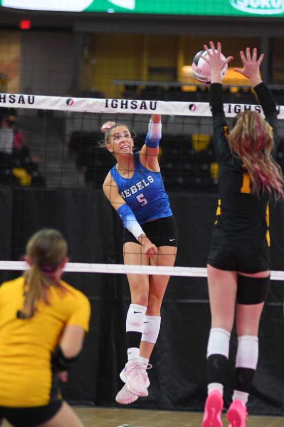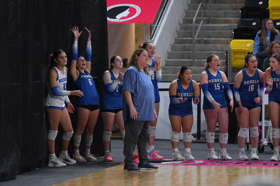 Against Janesville, the Rebels offense was led by seniors Elly Sieh and Kennedy Brant with nine kills apiece; junior Jada Cheville added five. Junior Kailey Larsen ended the evening with 23 assists; Sieh and Cheville both had two assists apiece.