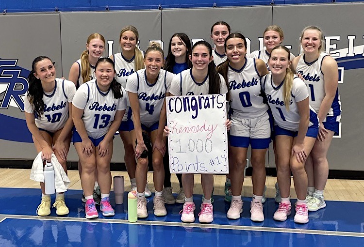 REINBECK – Gladbrook-Reinbeck senior forward Kennedy Brant not only notched a double-double in the Rebels’ season-opening 72-10 win over East Marshall on Tuesday, Dec. 2, she also scored her 1,000th career point. Brant led her team against the visiting Mustangs with 23 points and 15 rebounds. She currently has one of the highest field goal percentages (66.7%) in both the North Iowa Cedar League Conference and across Class 1A. Brant (front row, third from right) is pictured with her Rebel teammates on Dec. 2 in Reinbeck.