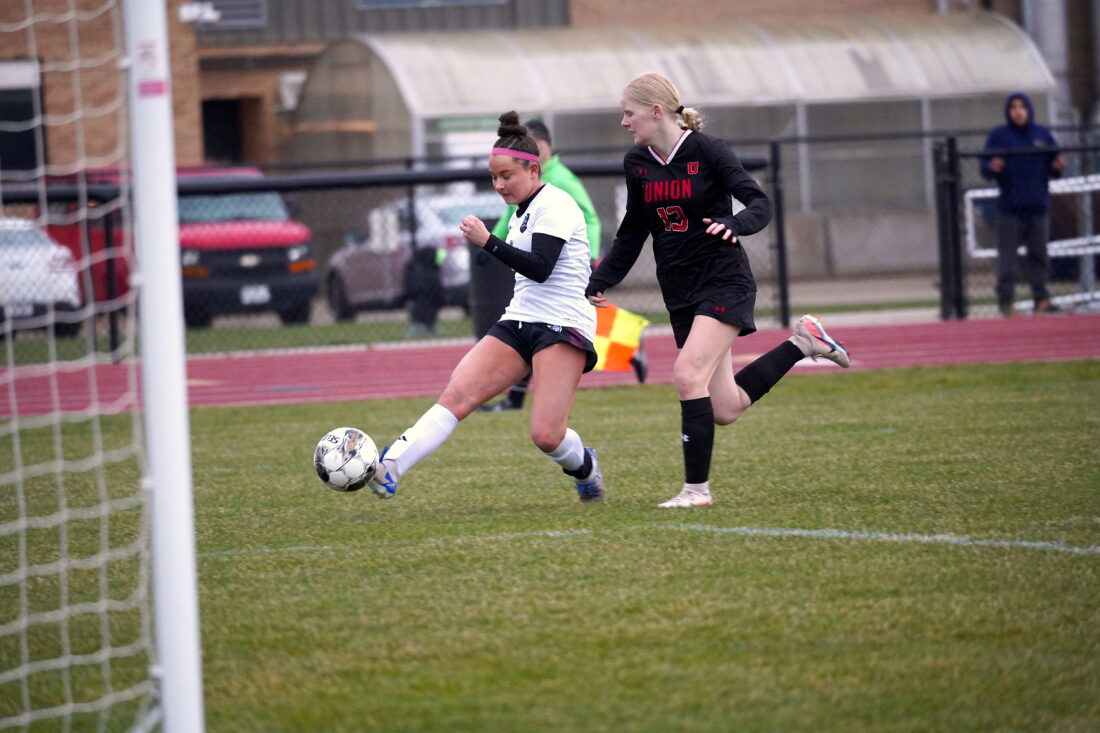The Knights spent much of the first half on defense working to combat the Rebels’ firepower. Following an initial slow 15 minutes, GCGR freshman sensation Karina Arvizu-Ersland knocked in the first goal before scoring again in the final five minutes ahead of the break. Between goals, Union-North Tama freshman forward Avery Weber exited the game due to injury following an attempt on goal; she later returned to play with written clearance from Union’s head athletic trainer, Taylor Vaske.